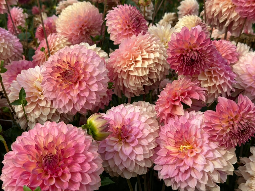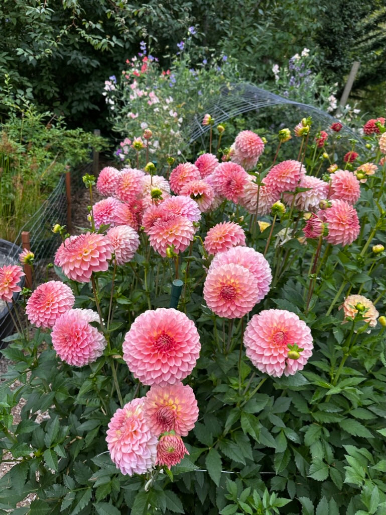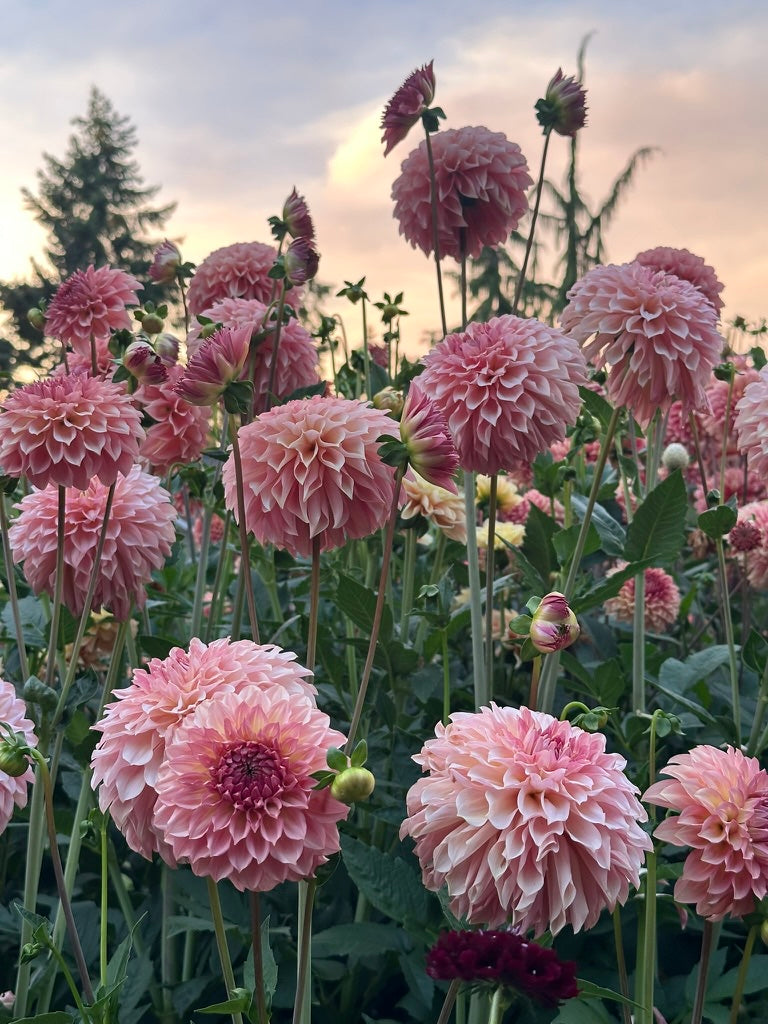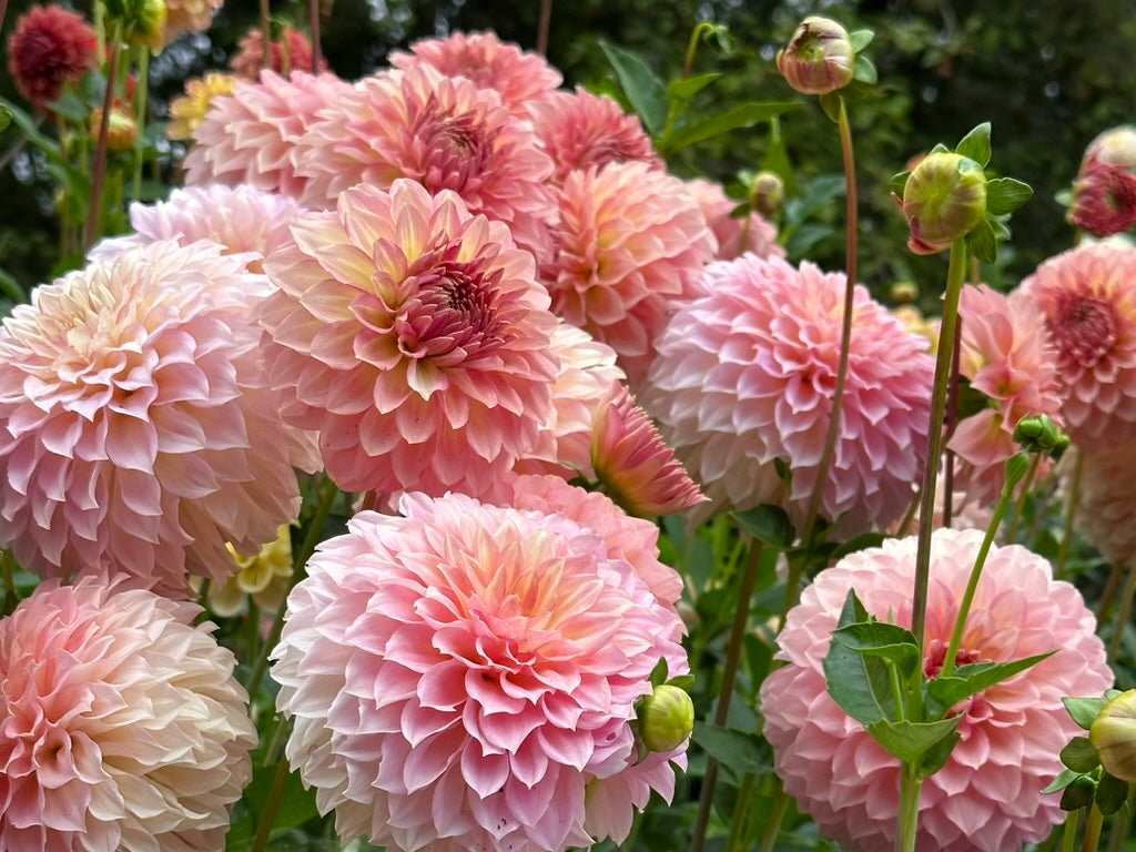 Amazingly, Freestone’s abundance also translates beautifully to cut flower production. Each stem produces 4-6 fully formed 12”+ stems like a candelabra. The plant is easy growing to 3.5-4’, and slightly taller in shadier conditions. Hot conditions seem to bring out more yellow-peach coloring, and stronger picottee.