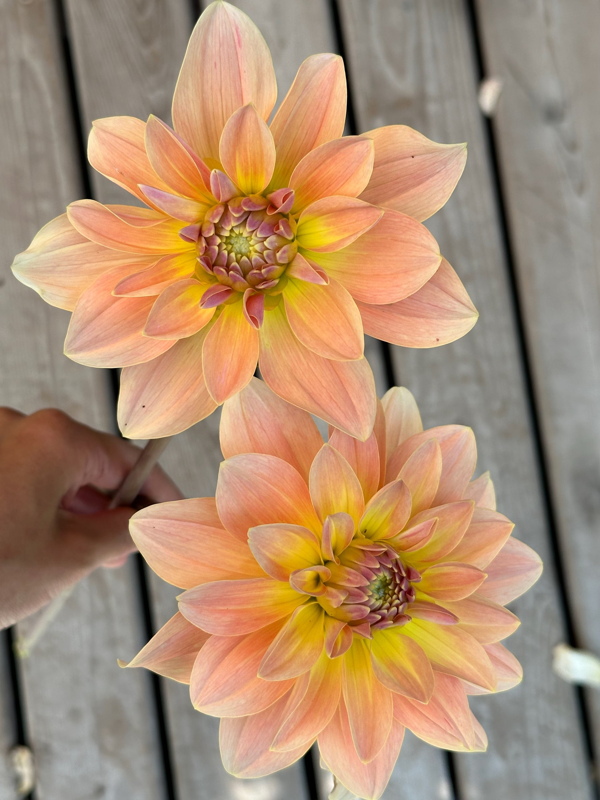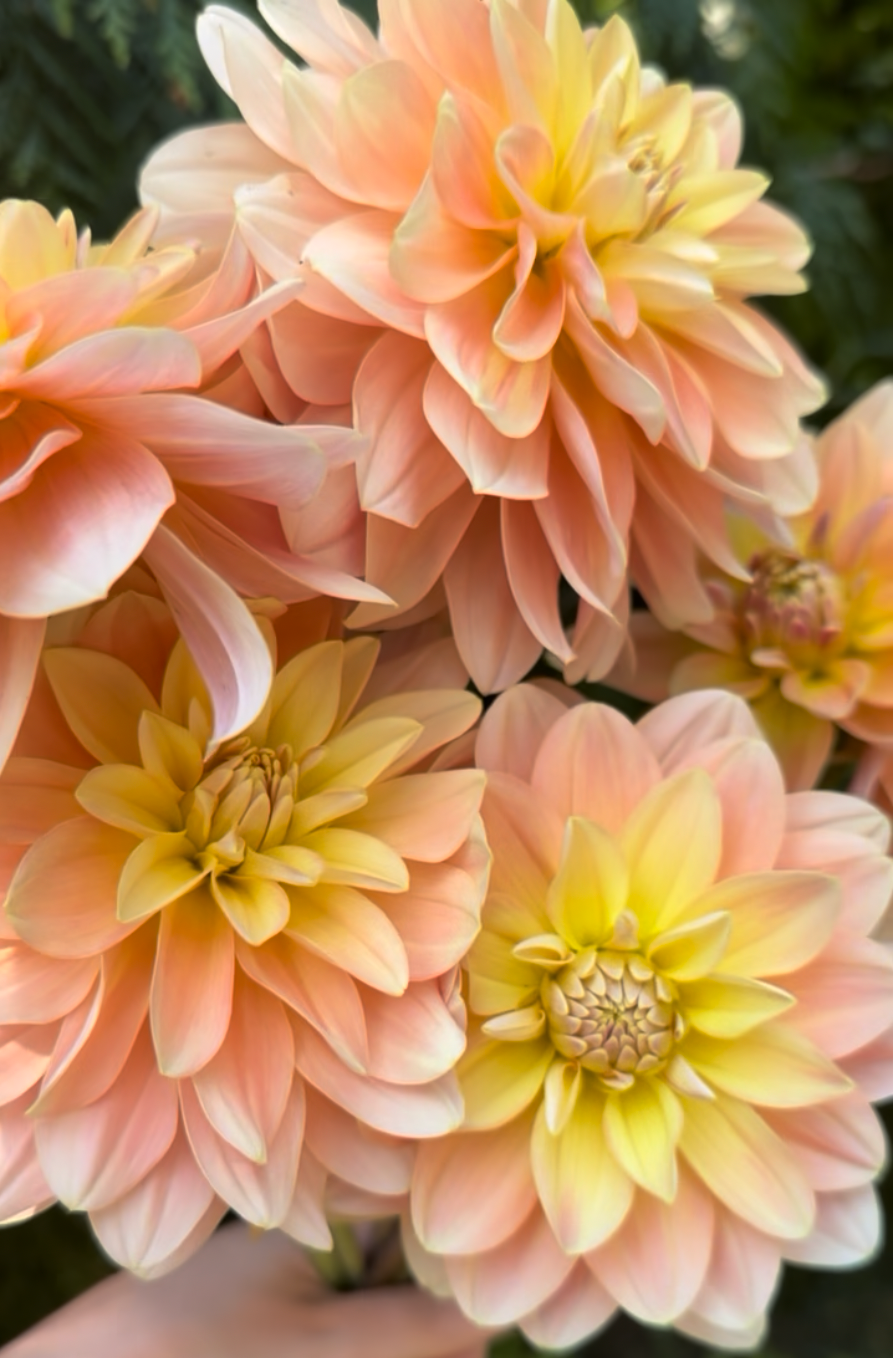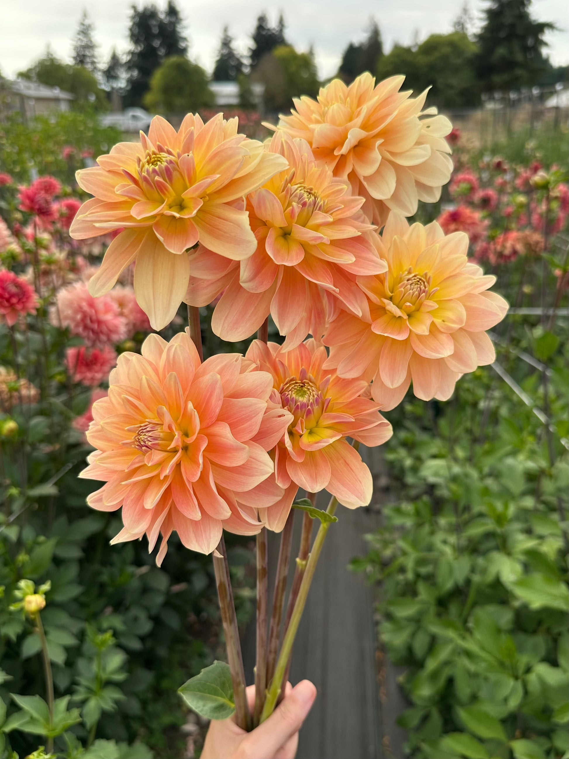 Burfoot Ginger is tall, luminous, and dependable. Soft pastel peach petals open to warm, glowing centers, creating full, sunlit blooms that feel like summer. The centers carry a subtle hint of pastel pink, which helps Ginger blend easily with other glowy pastels in arrangements.