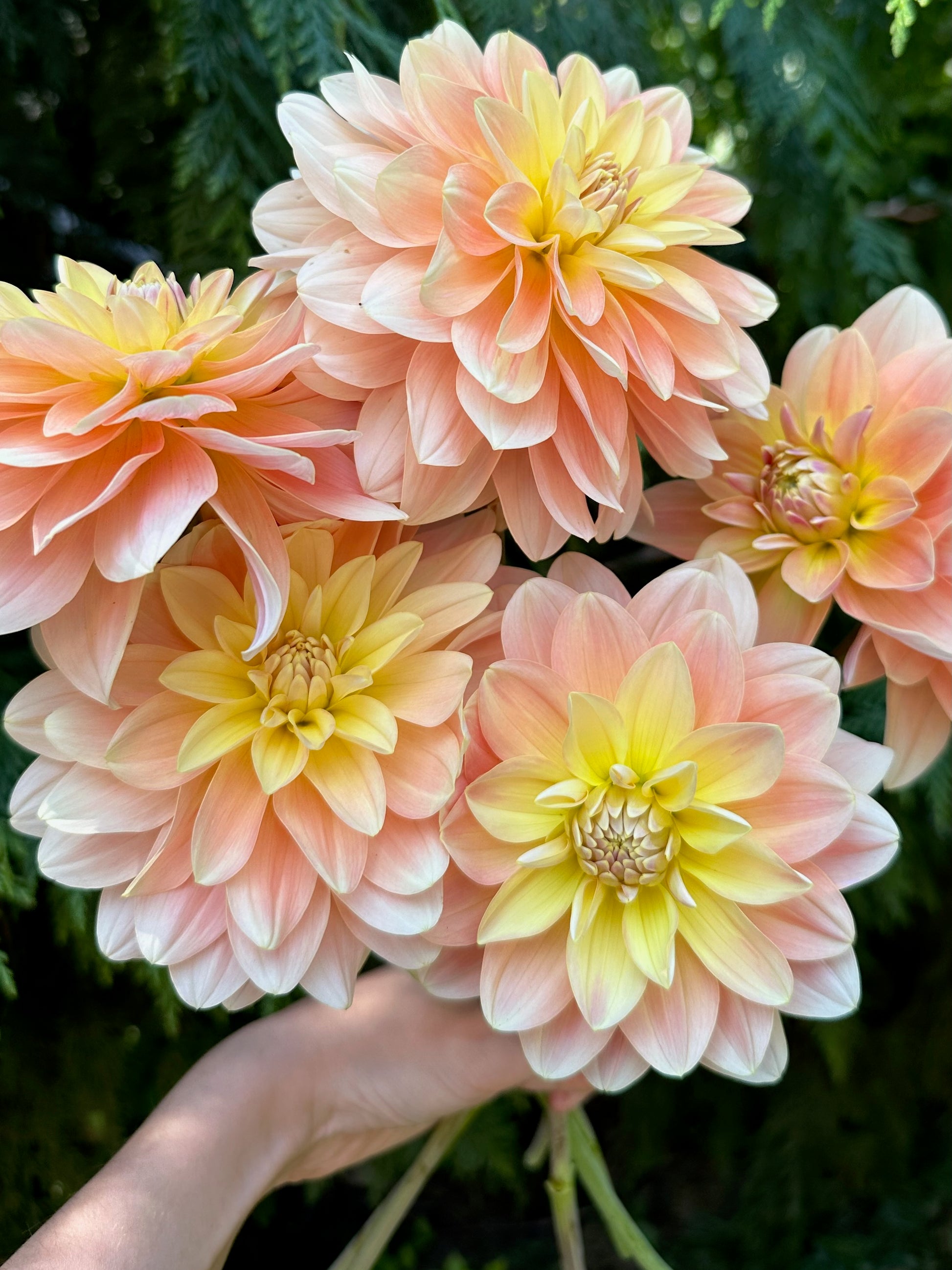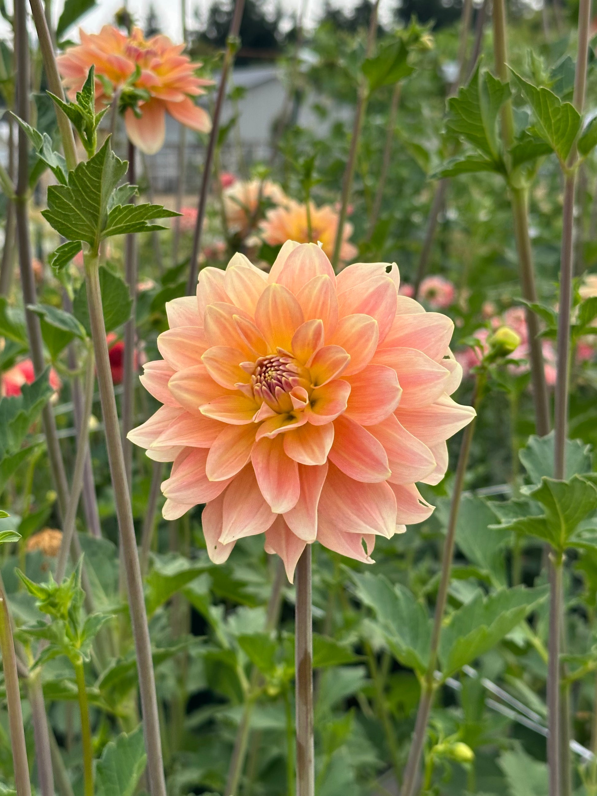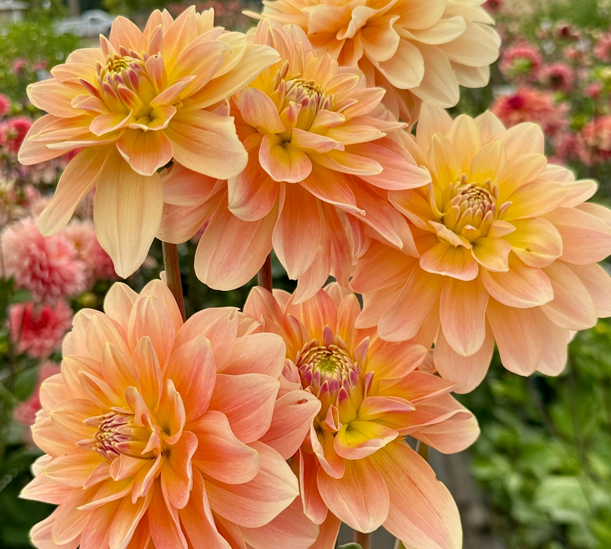 Burfoot Ginger is tall, luminous, and dependable. Soft pastel peach petals open to warm, glowing centers, creating full, sunlit blooms that feel like summer. The centers carry a subtle hint of pastel pink, which helps Ginger blend easily with other glowy pastels in arrangements.