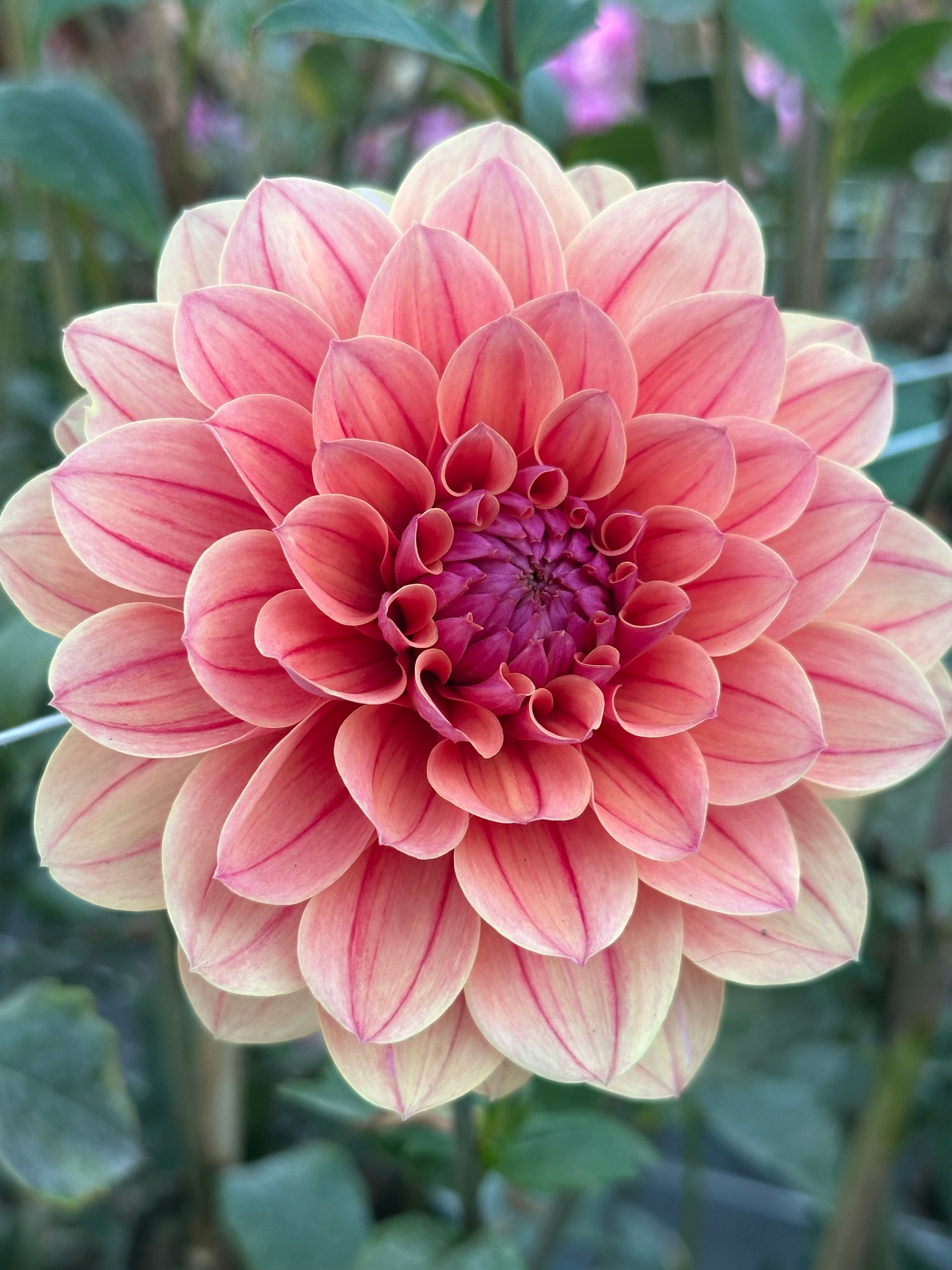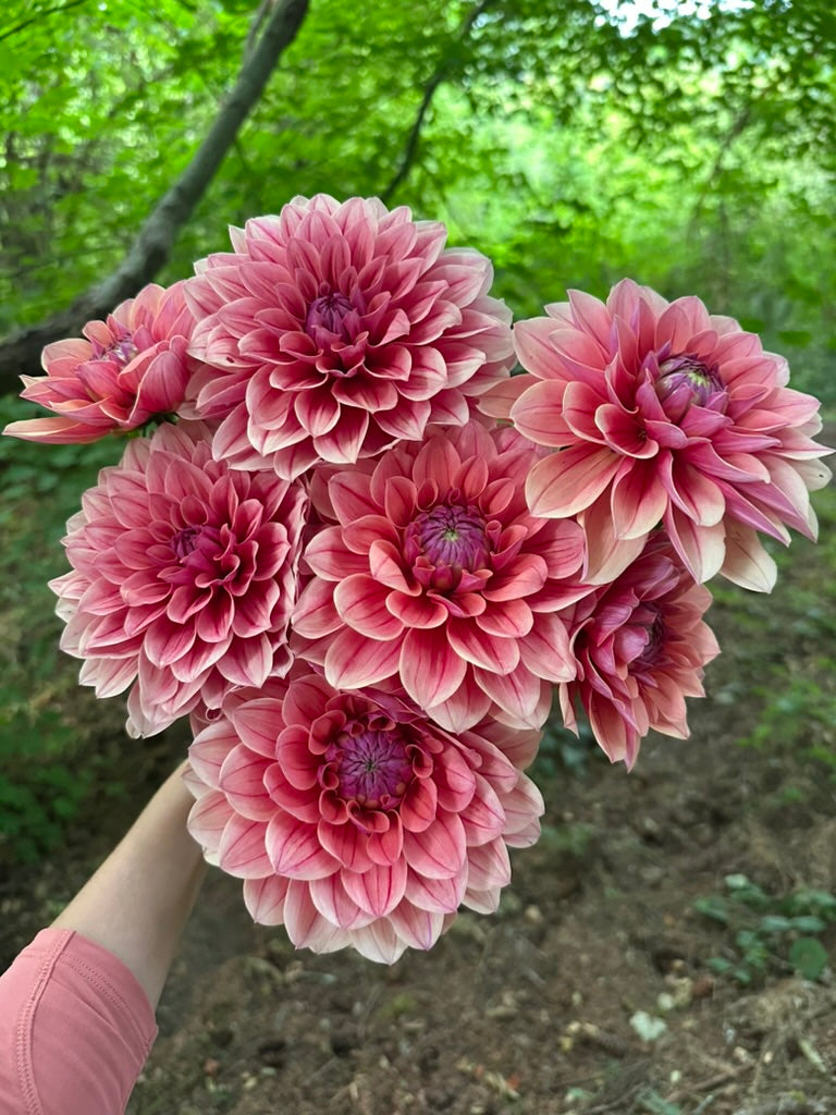 The first time I saw BF Roan bloom in my garden, I was utterly stunned by its complexity and depth. Each strawberry-flecked petal is softly pinstriped, with a glowing violet reverse. In my PNW garden and field, mid-season blooms develop a beautiful creamy-tan fade, adding even more depth. For all its complexity, Roan is wonderfully versatile-- it slips seamlessly into our favorite color palettes, but is rarely outshined.