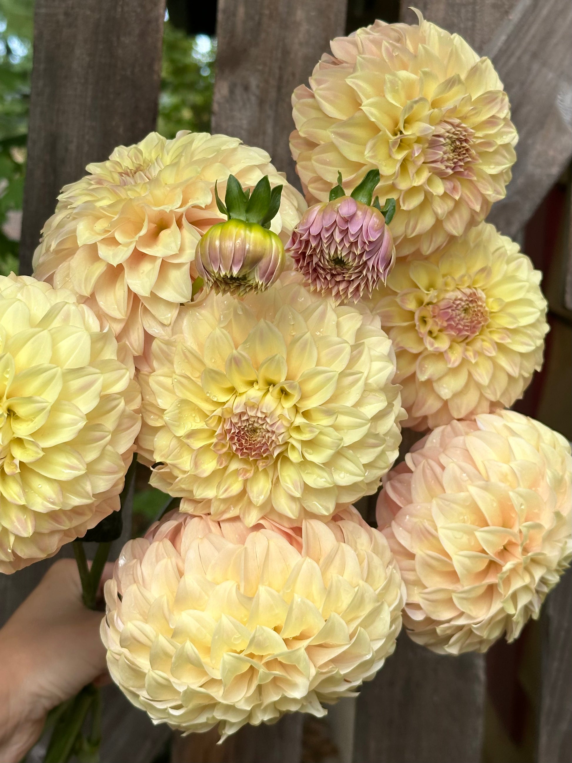 My first aussie! Truly exemplary-- vigorous strong plants branch freely, putting up tons of stems and big, juicy blooms! Colors range from pinky peach, to soft blushed buttercream. Petals go all the way back to the stem, forming a big bodacious sphere. Delightful!